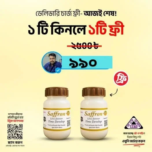 ১ টি অর্ডার করলে পাচ্ছেন ১ টা ফ্রি শুধু মাত্র আজকের জন্য।